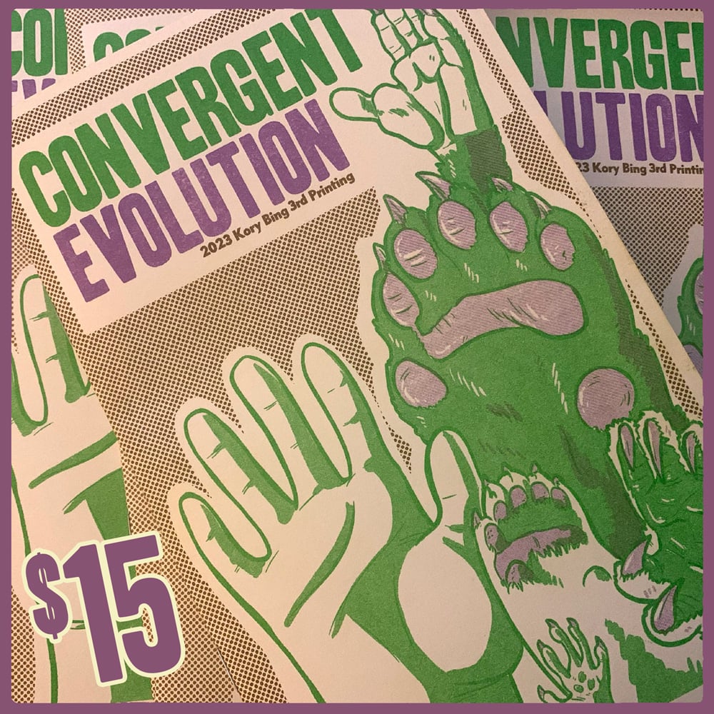 A 3-color risograph zine about CONVERGENT EVOLUTION! Did you know that not all legless reptiles are snakes? Or that flight evolved three different times among vertebrates? That's neat! Learn more with this hand-made zine.