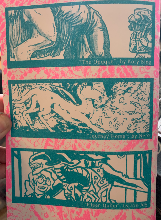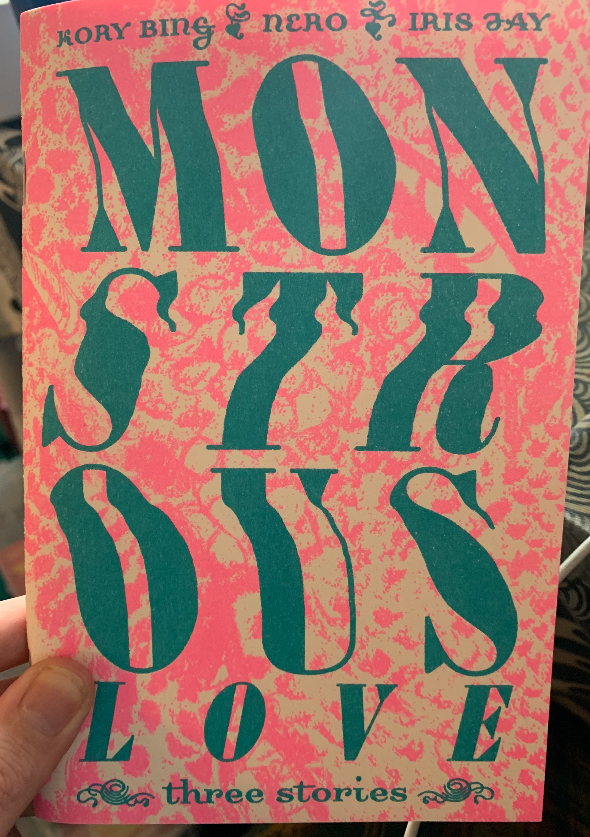 Three stories of love and monsters in a two-color risograph zine! Stories found in Monstrous Love include "Journey Home" by Nero O'Reilly, "Eileen Quinn" by Iris Jay, and "The Opaque" by me!