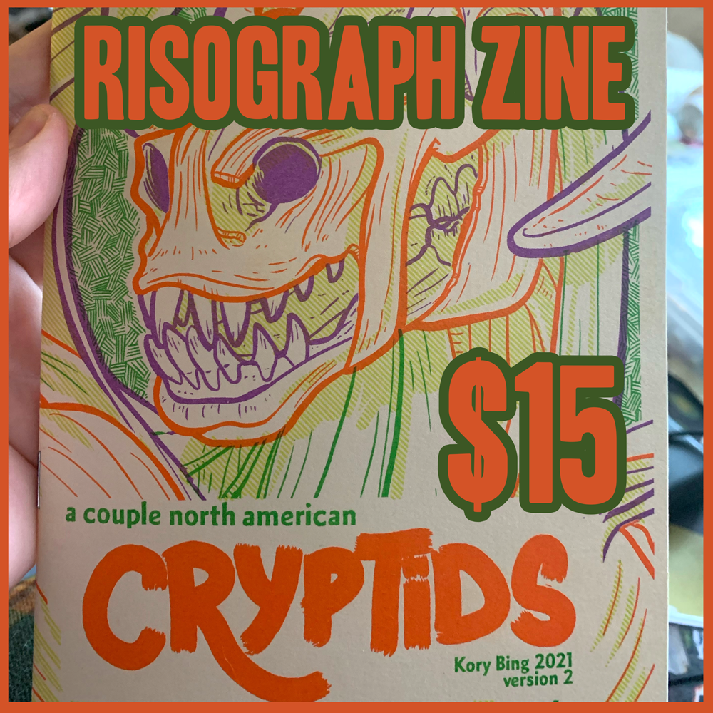A risograph zine about North American Cryptids! This is an updated version of my original Cryptids zine, featuring new and updated art!