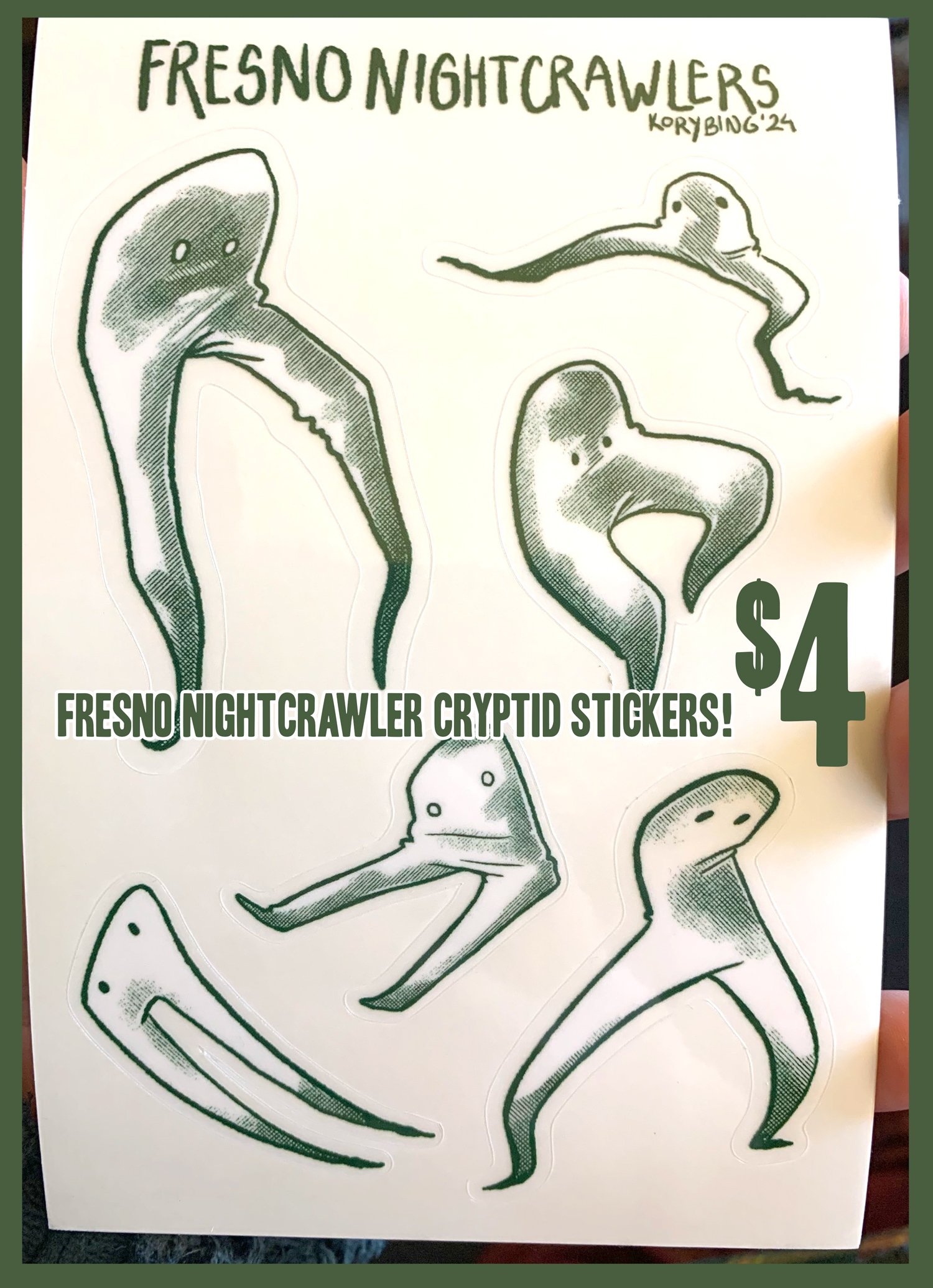 Six transparent stickers of everyone's favorite haunted pants, the Fresno Nightcrawlers! Look at them. They're just hanging out.