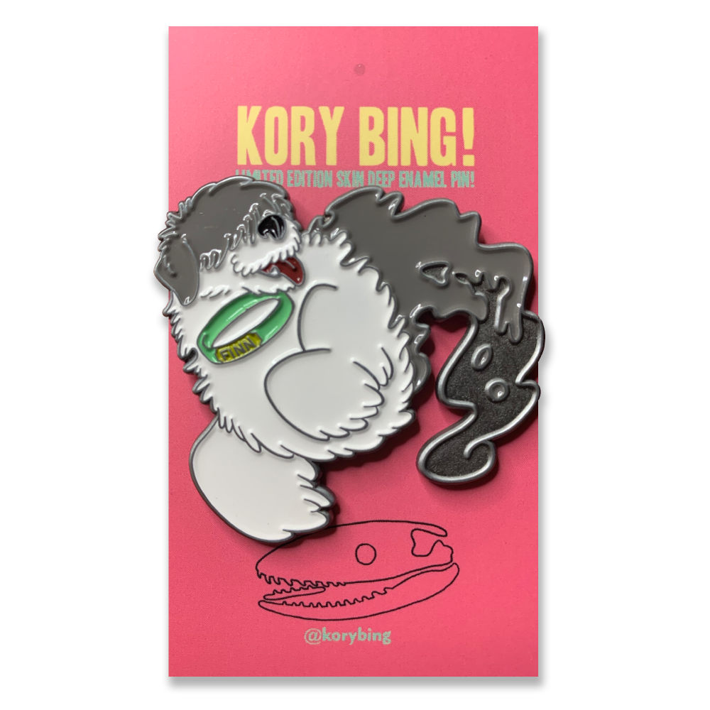 Enamel pin of Martha the Ghost Dog from the webcomic Skin Deep. Soft enamel.
