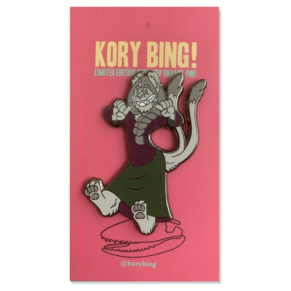 Enamel pin of Rhonda Phelton, a Bohemian Lion from the webcomic Skin Deep. Hard enamel.